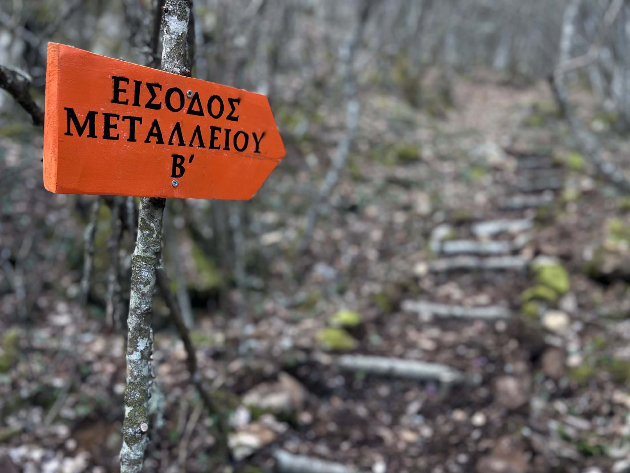 Αφήνουμε το μονοπάτι Μεταξά στα δεξιά μας και ακολουθούμε τον δασικό δρόμο με κατεύθυνση αριστερά για 750 μέτρα όπου και καταλήγουμε στα αρχαία μεταλλεία.