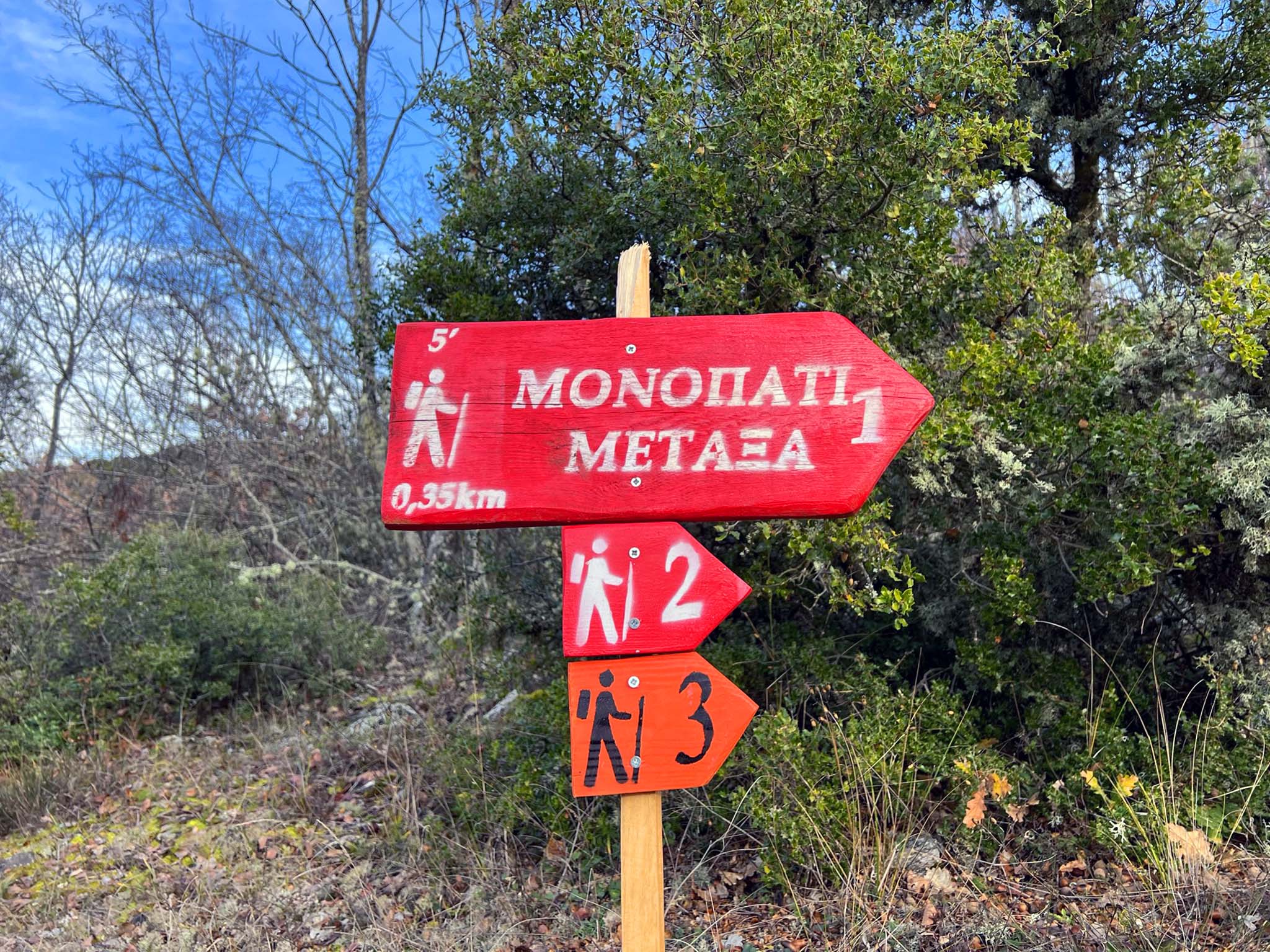 Ακολουθούμε το ανηφορικό προπολεμικό «Μονοπάτι του Μεταξά» που έχει πολύ καλή σήμανση.