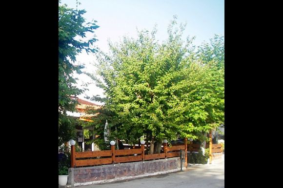 Στην αυλή το καλοκαίρι στρώνονται τραπεζάκια όπου απολαμβάνεις τον καφέ σου παίζοντας τάβλι.
