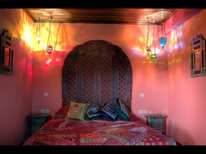 Κάθε βράδυ η όμορφη Σεχραζάντ αφηγούνταν παραμύθια χωρίς τέλος από την Ανατολή, την Ινδία, και την Αίγυπτο. Αυτό το δωμάτιο μόνο με χίλιες και μια λέξεις θα μπορούσε να αγγίξει όλες σας τις αισθήσεις. Χίλιες και μια μικρές υπερβολικές λεπτομέρειες, έντονα χρώματα δημιουργούν ethnic ατμόσφαιρα , πριβέ γωνιές ξεδιπλώνονται παντού, ενώ τα όμορφα κρεμαστά χειροποίητα φαναράκια αναμιγνύονται με την λάμψη της φωτιάς και φτιάχνουν το τέλειο παραμυθένιο σκηνικό σε ένα παιχνίδι αντανακλάσεων.