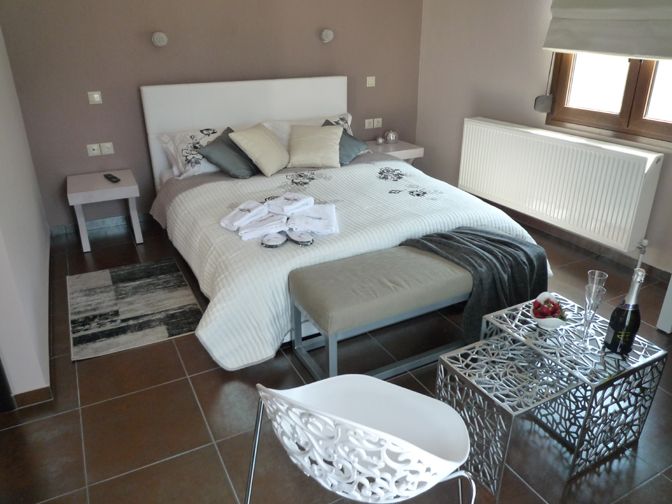 Ένα δωμάτιο μοντέρνο, αυστηρά γραμμικό στα γήινα χρώματα όπου με τα λίγα εκκεντρικά αξεσουαρ και τις αντανακλάσεις των φωτιστικών της ολοκληρώνουν τη διακριτική πολυτέλεια για να παγιδεύσουν και να ζωντανέψουν τα όμορφα όνειρα σας.